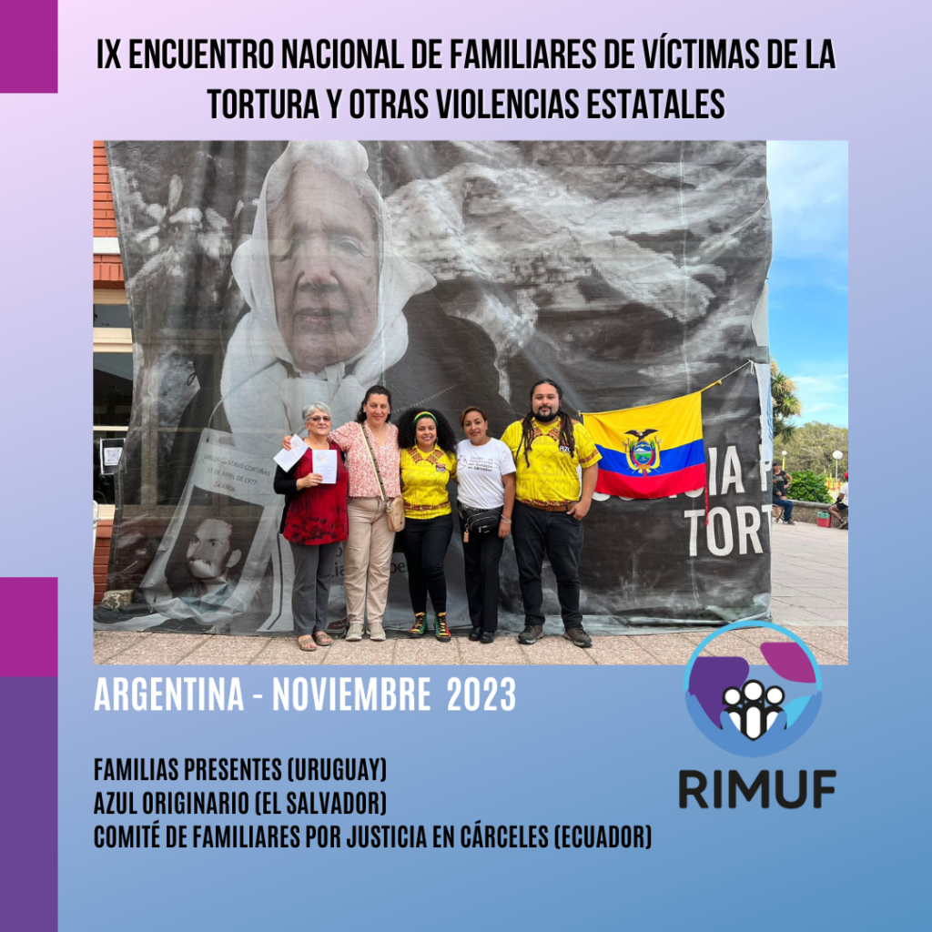 Entre los días 23 y 26 de noviembre de 2023, en la ciudad de Chapadmalal, Buenos Aires (Argentina) se llevó a cabo el IX Encuentro Nacional de Familiares de Víctimas de Violencia Estatal organizado por la Comisión Provincial por la Memoria, en el que participaron mujeres referentes de nuestra red: Wendy Morales, directora de Azul Originario (El Salvador); Ana Morales, vocera del Comité de Familiares por Justicia en Cárceles (Ecuador); Martha Billares y Gabriela Rodriguez, integrante y presidenta de Familias Presentes (Uruguay), junto a mujeres familiares de ACiFaD (Argentina), quienes ya han formado parte de los encuentros pasados.